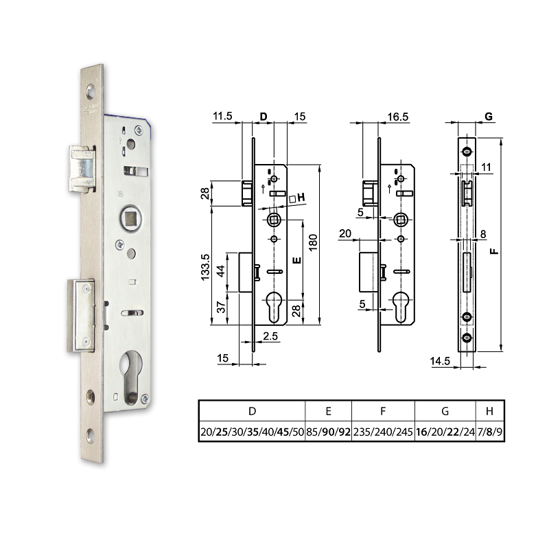 - Cilinderes zár. Csak DIN 18252 méretű cilinderrel (9.5x6.6 mm).